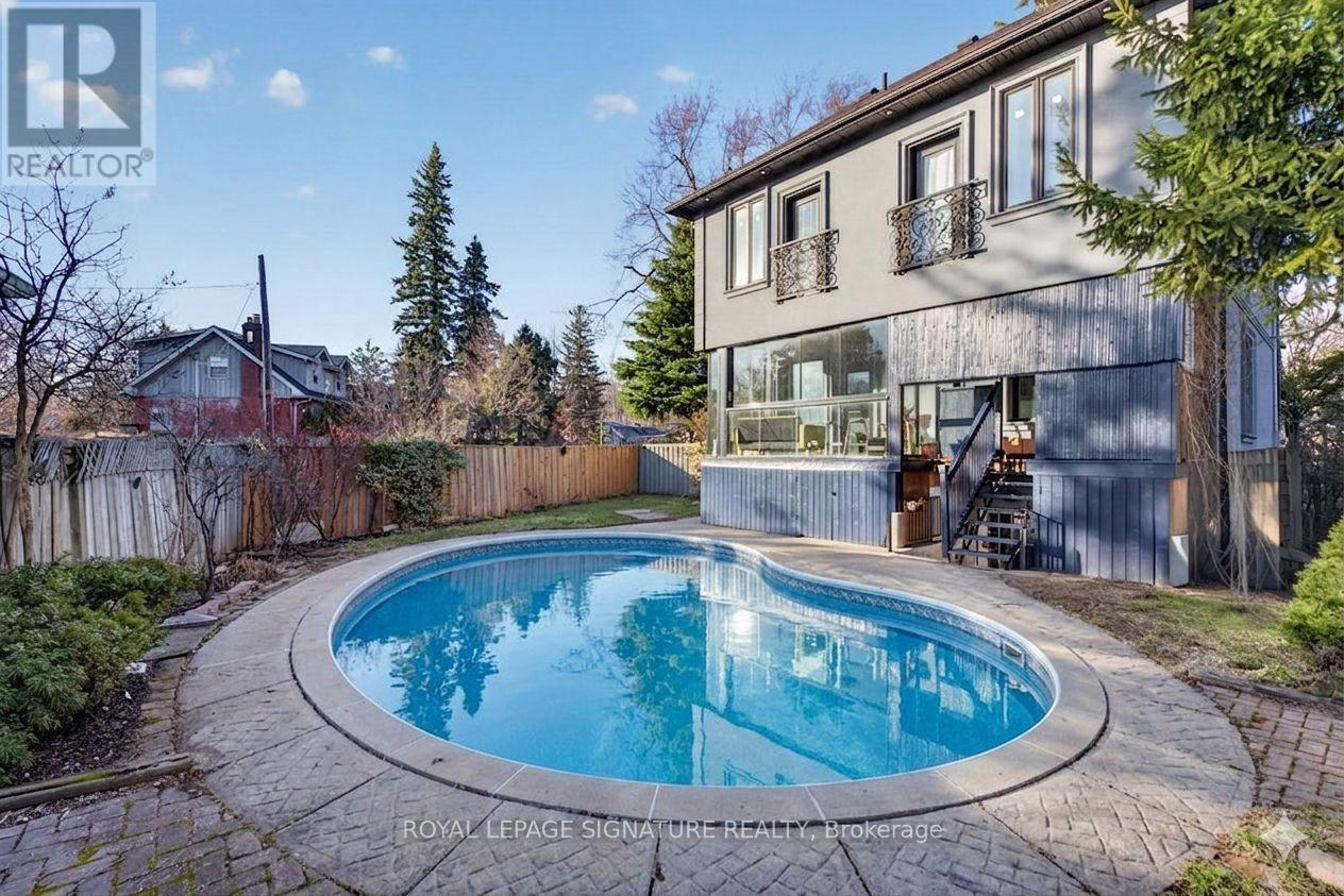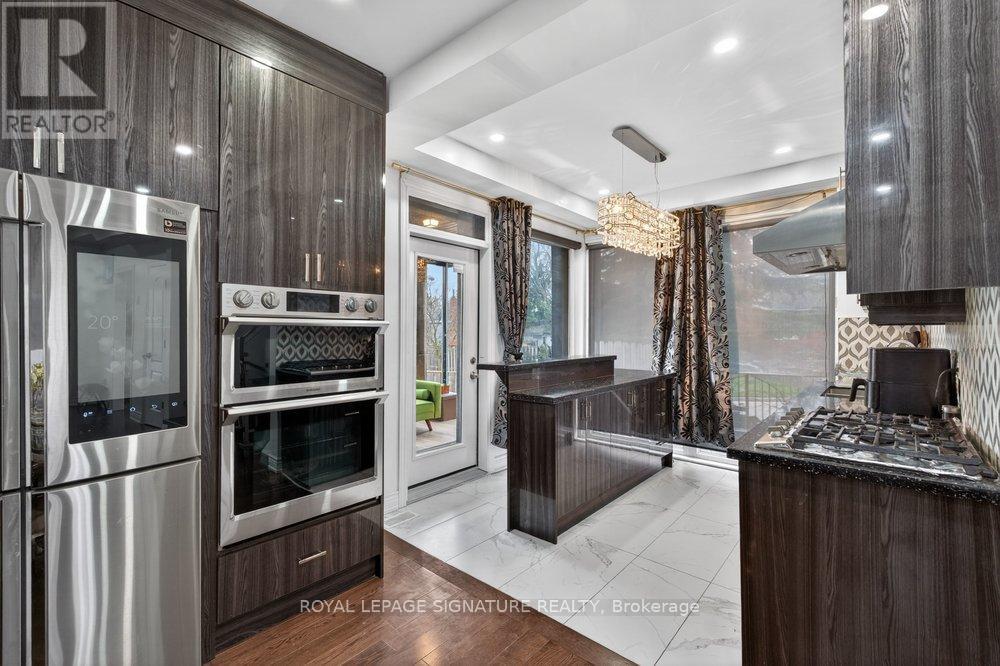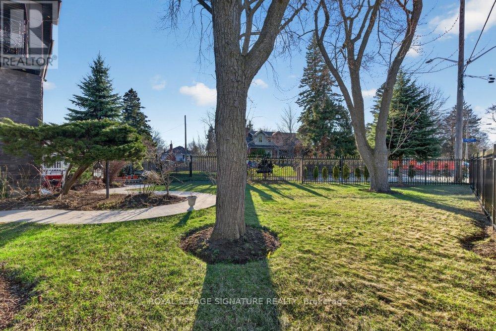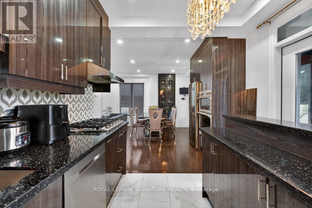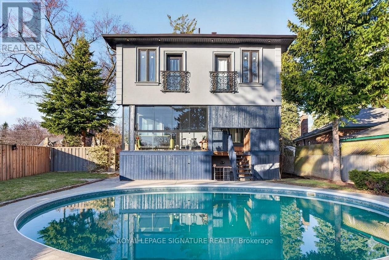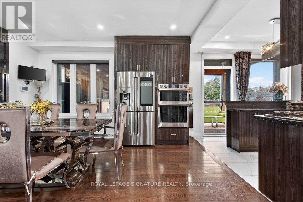 WOW On Cliffcrest! Situated on a rare, massive corner lot, this custom-built estate masterfully blends architectural scale with chic, modern refinement. The meticulously landscaped grounds frame the property from every angle, offering a lush sanctuary for garden enthusiasts and an expansive outdoor arena designed for high-end entertaining.The main level unfolds with an airy, open-concept living and dining floor plan, anchored by rich hardwood floors and oversized windows that invite a steady flow of natural light. The glamourous chef's kitchen serves as a stylistic focal point, featuring granite countertops, a custom backsplash, and premium stainless steel appliances, including a wall oven and gas cooktop. Enveloped by floor-to-ceiling glass, the kitchen leads directly to a fully enclosed sunroom-a tranquil space for morning coffee. A dedicated main-floor office provides a sophisticated environment for professional pursuits.Ascend to the second floor, where soaring ceilings and a central skylight create an airy, voluminous atmosphere. The primary suite is a true retreat, offering a private balcony, a walk-in closet, and a 4-piece ensuite. Three additional well-appointed bedrooms feature generous windows and ample closet space, providing elevated comfort for the entire family.The versatile basement extends the living space significantly, featuring a secondary kitchen, a large recreation area, and two additional bedrooms-perfect for multi-generational living, guest accommodations or income potential Outside, the fully fenced yard offers total privacy and a resort-style experience with an inground pool. Complete with a detached double garage and a private driveway, this property is a rare find that combines premium renovations and exceptional scale in a prime location. (id:61483)