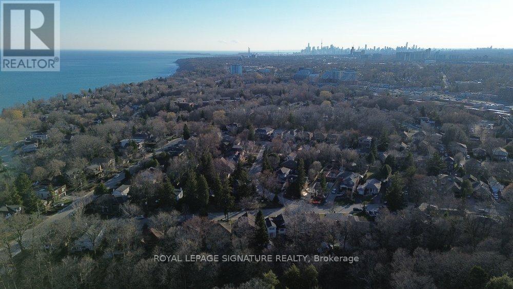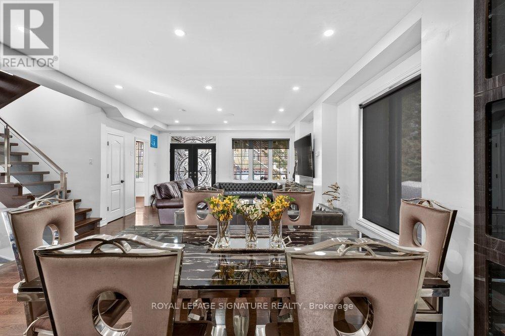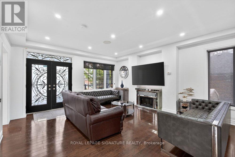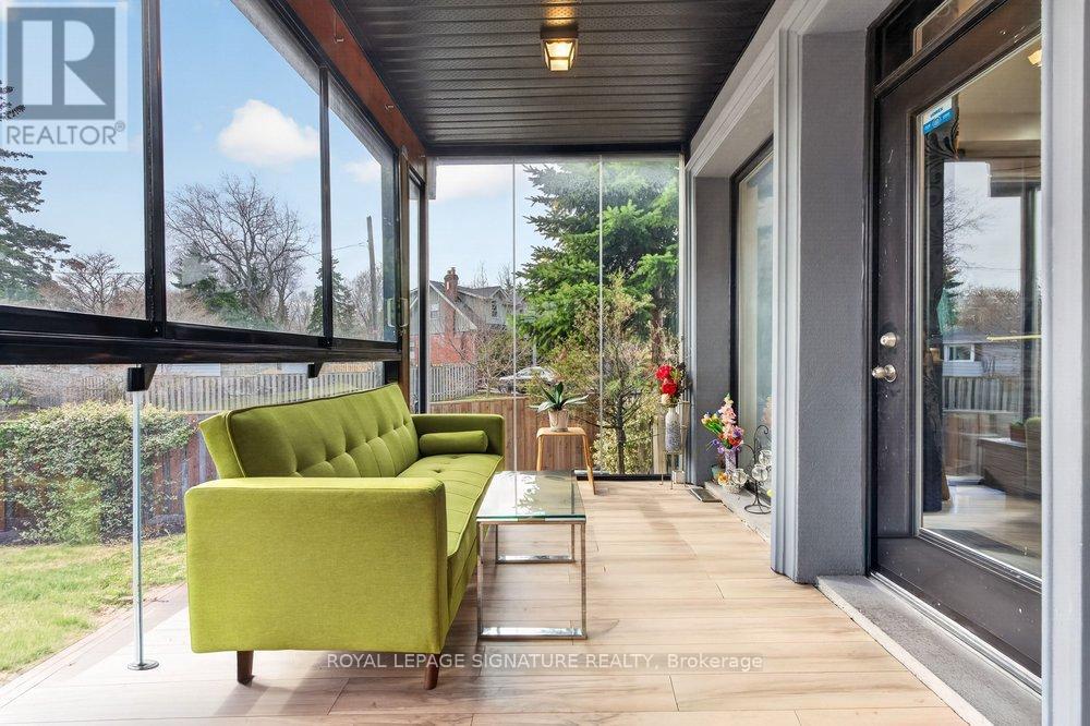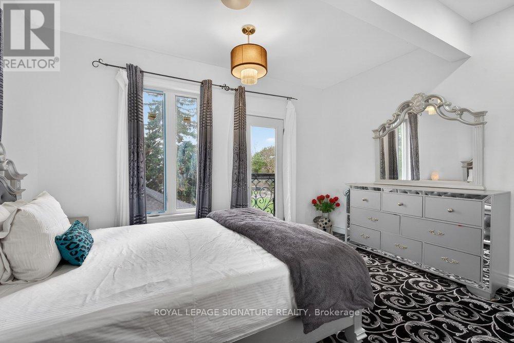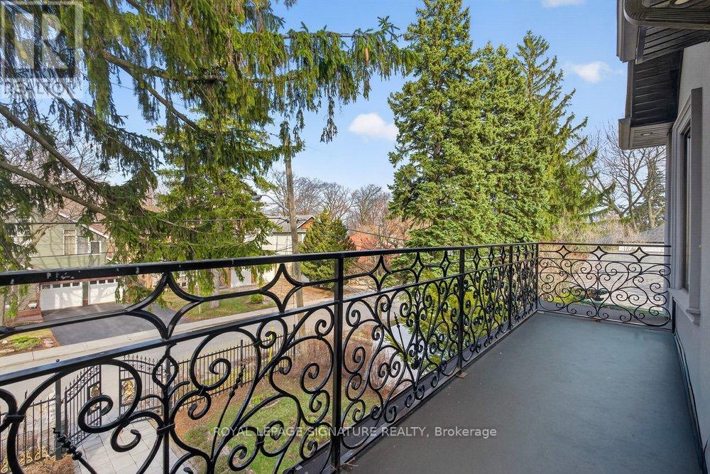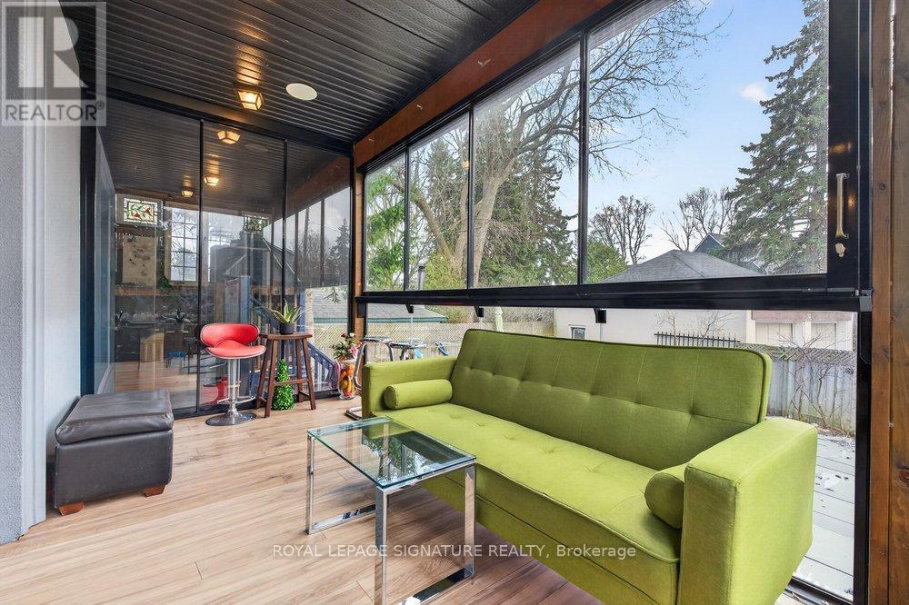 WOW On Cliffcrest! Situated on a rare, massive corner lot, this custom-built estate masterfully blends architectural scale with chic, modern refinement. The meticulously landscaped grounds frame the property from every angle, offering a lush sanctuary for garden enthusiasts and an expansive outdoor arena designed for high-end entertaining.The main level unfolds with an airy, open-concept living and dining floor plan, anchored by rich hardwood floors and oversized windows that invite a steady flow of natural light. The glamourous chef's kitchen serves as a stylistic focal point, featuring granite countertops, a custom backsplash, and premium stainless steel appliances, including a wall oven and gas cooktop. Enveloped by floor-to-ceiling glass, the kitchen leads directly to a fully enclosed sunroom-a tranquil space for morning coffee. A dedicated main-floor office provides a sophisticated environment for professional pursuits.Ascend to the second floor, where soaring ceilings and a central skylight create an airy, voluminous atmosphere. The primary suite is a true retreat, offering a private balcony, a walk-in closet, and a 4-piece ensuite. Three additional well-appointed bedrooms feature generous windows and ample closet space, providing elevated comfort for the entire family.The versatile basement extends the living space significantly, featuring a secondary kitchen, a large recreation area, and two additional bedrooms-perfect for multi-generational living, guest accommodations or income potential Outside, the fully fenced yard offers total privacy and a resort-style experience with an inground pool. Complete with a detached double garage and a private driveway, this property is a rare find that combines premium renovations and exceptional scale in a prime location. (id:61483)