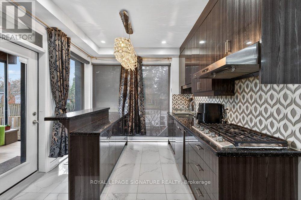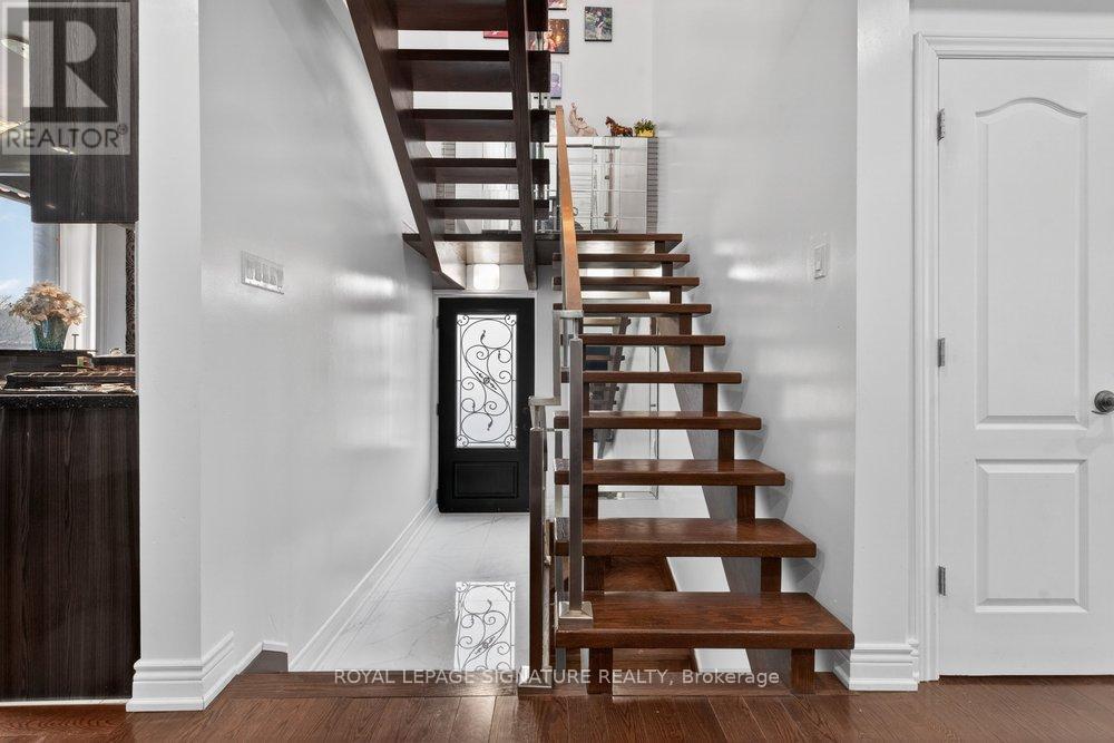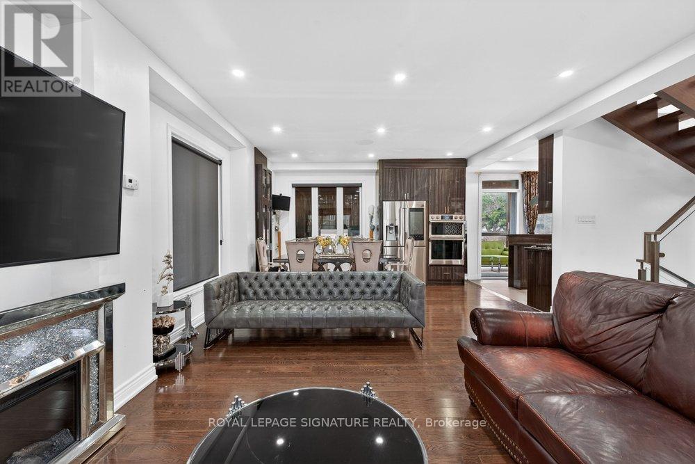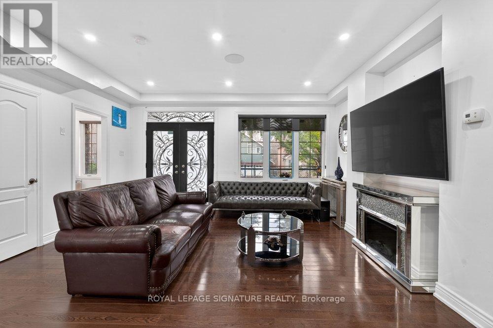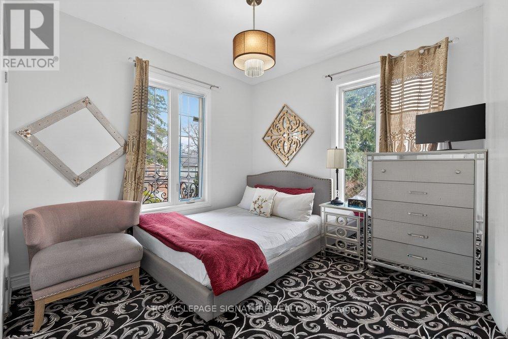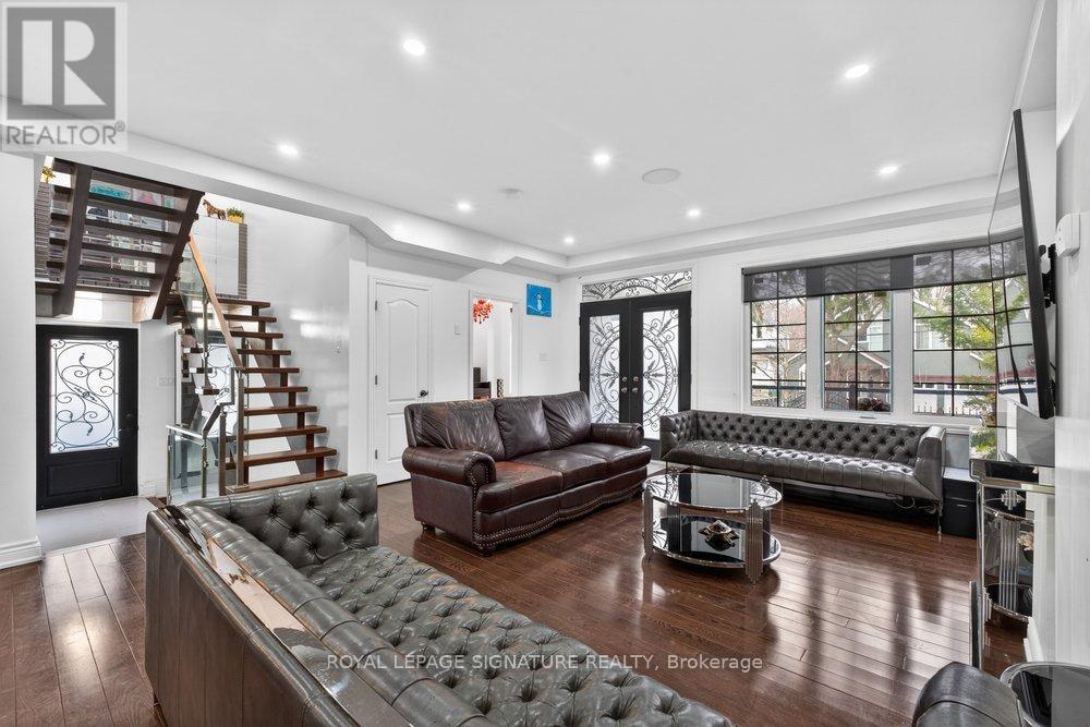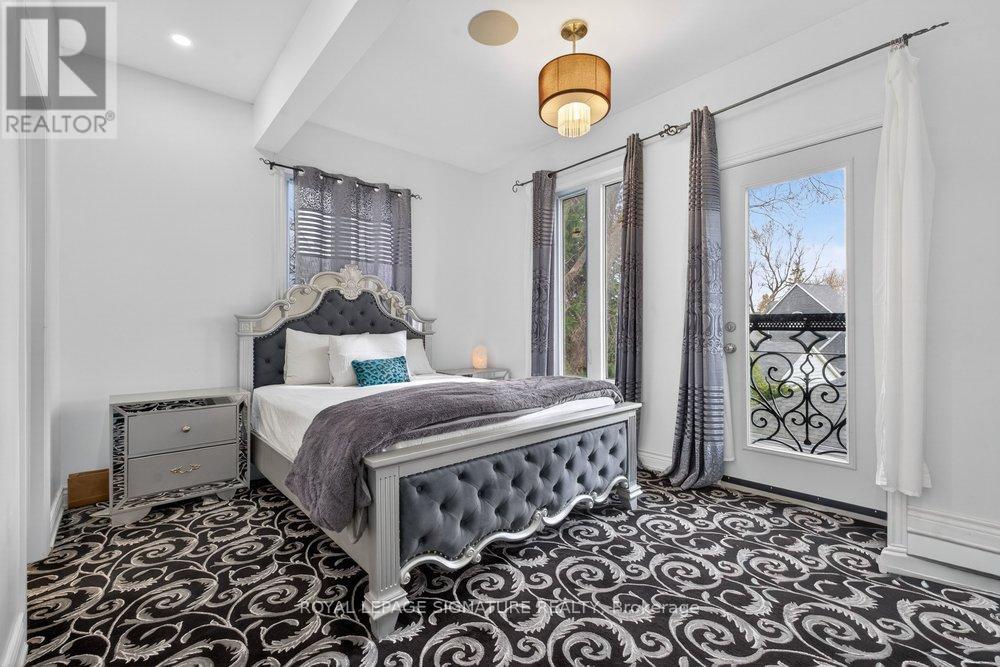 WOW On Cliffcrest! Situated on a rare, massive corner lot, this custom-built estate masterfully blends architectural scale with chic, modern refinement. The meticulously landscaped grounds frame the property from every angle, offering a lush sanctuary for garden enthusiasts and an expansive outdoor arena designed for high-end entertaining.The main level unfolds with an airy, open-concept living and dining floor plan, anchored by rich hardwood floors and oversized windows that invite a steady flow of natural light. The glamourous chef's kitchen serves as a stylistic focal point, featuring granite countertops, a custom backsplash, and premium stainless steel appliances, including a wall oven and gas cooktop. Enveloped by floor-to-ceiling glass, the kitchen leads directly to a fully enclosed sunroom-a tranquil space for morning coffee. A dedicated main-floor office provides a sophisticated environment for professional pursuits.Ascend to the second floor, where soaring ceilings and a central skylight create an airy, voluminous atmosphere. The primary suite is a true retreat, offering a private balcony, a walk-in closet, and a 4-piece ensuite. Three additional well-appointed bedrooms feature generous windows and ample closet space, providing elevated comfort for the entire family.The versatile basement extends the living space significantly, featuring a secondary kitchen, a large recreation area, and two additional bedrooms-perfect for multi-generational living, guest accommodations or income potential Outside, the fully fenced yard offers total privacy and a resort-style experience with an inground pool. Complete with a detached double garage and a private driveway, this property is a rare find that combines premium renovations and exceptional scale in a prime location. (id:61483)