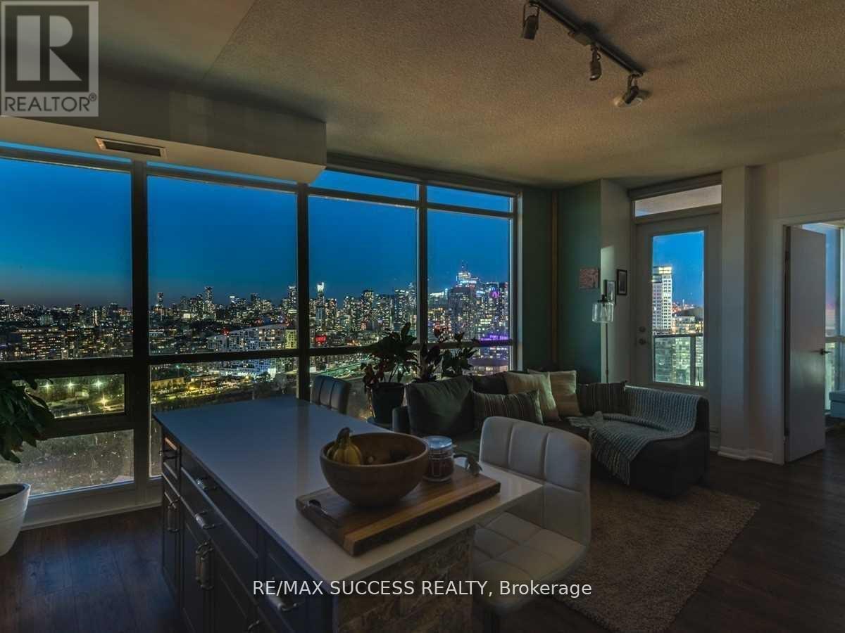 Spacious with 9-foot ceilings, lots of natural sunlight, functional layout, large living room, laminate flooring, new renovated custom kitchen, laundry, lots of storage, private balcony not shared, large windows that show a full panoramic view of Toronto skyline, CN Tower & Lake Ontario from every part of the condo that is not obstructed. Airbnb-permitted building offers exceptional amenities including Club Odyssey with a fully equipped gym, indoor pool, sauna, yoga studio, residents' lounge, jacuzzi, social club, and an 8th-floor rooftop terrace with city views. Safe, secure building with concierge and strong community atmosphere. Includes 1 parking space and 1 locker. Heat Included, Common Elements Included, Parking Included, Condo Taxes Included, CAC Included, Building Insurance Included. Unbeatable walkability - steps to transit, schools, parks, grocery stores, cafes, restaurants, bars, grocery store, library and more. Walking distance to the waterfront, TTC, CN Tower, Rogers Centre, Scotiabank Arena, and Union Station. Minutes to the Gardiner Expressway for easy commuting. (id:61483)
