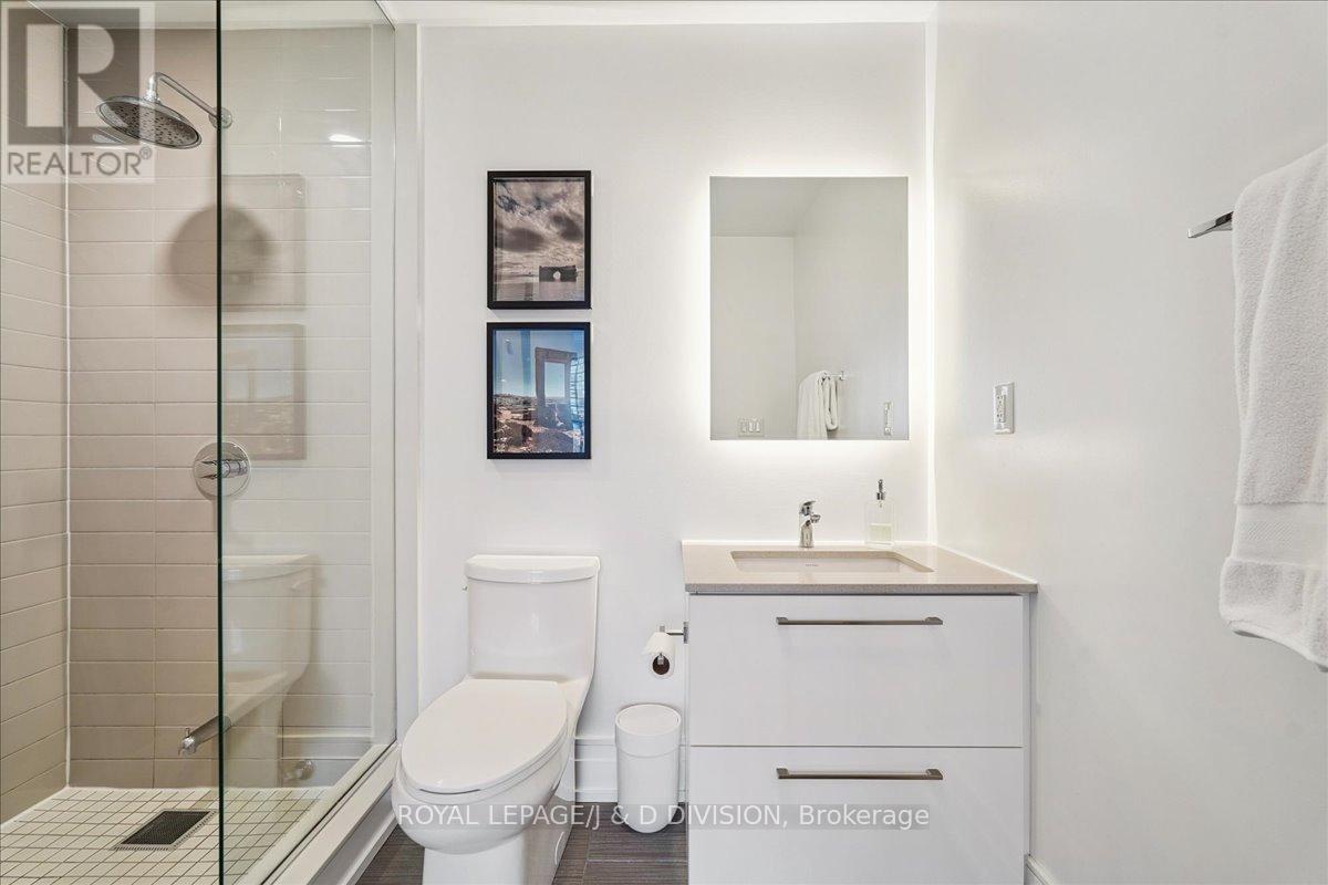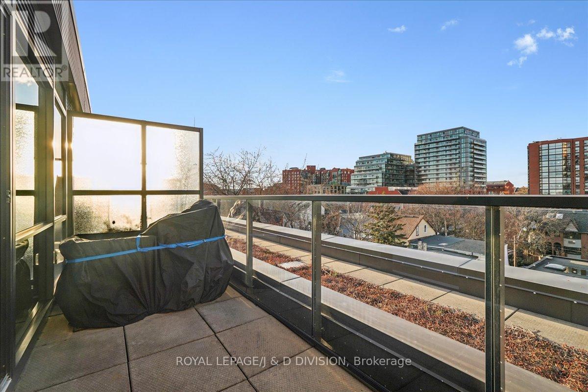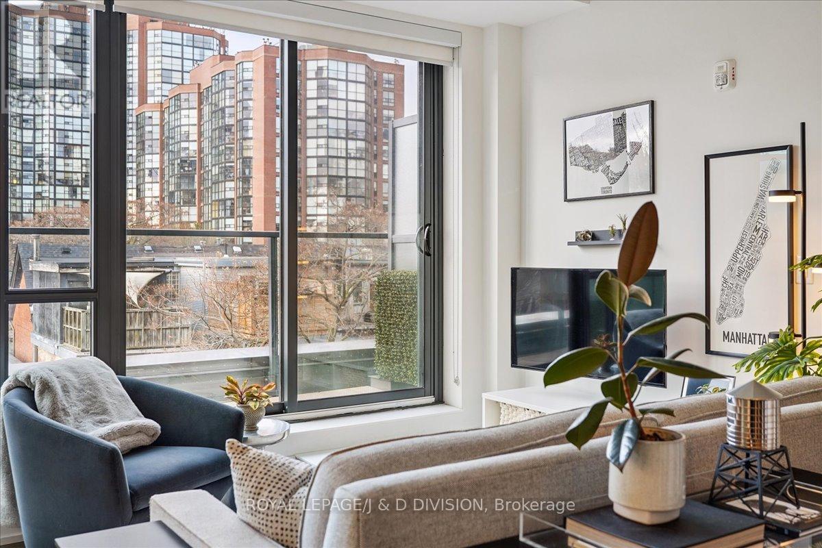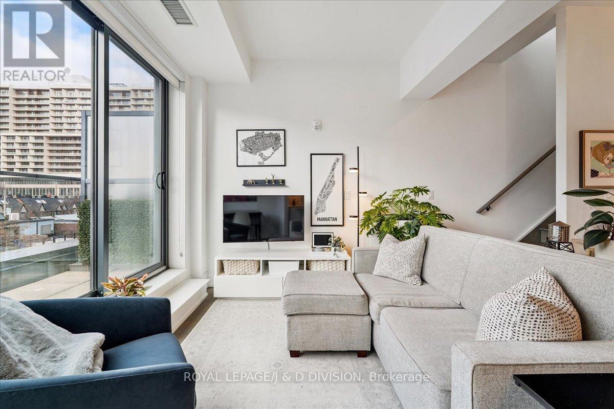 $1,002.70 MonthlyRare two-storey King West condo with two private terraces. Large windows fill the home with abundant natural light creating a bright and welcoming living space. Picture your morning coffee on a private terrace while the city quietly wakes up below. The main level features soaring ceilings and an open living and dining area with a well-appointed kitchen, complete with Jenn-Air appliances and a Fisher & Paykel refrigerator and a powder room. The living area flows naturally to a private terrace with a gas BBQ line-perfect for relaxed outdoor dining. A dedicated home office on the main floor provides a comfortable and practical workspace. Upstairs, the primary bedroom easily accommodates a king-size bed and offers unobstructed northern views along with access to a second private terrace. A professionally customized walk-in closet by Simply Closets and convenient second-floor laundry add everyday functionality. The locker is on the second floor and parking is for a motorcycle. A quiet boutique building Residents enjoy a welcoming building community with a party room, bar, expansive outdoor terrace, TV and barbeque. Steps to King West restaurants, groceries, parks, 2 TTC street car access, the future Ontario Line at King & Bathurst nearby and Billy Bishop Airport is within walking distance. (id:61483)