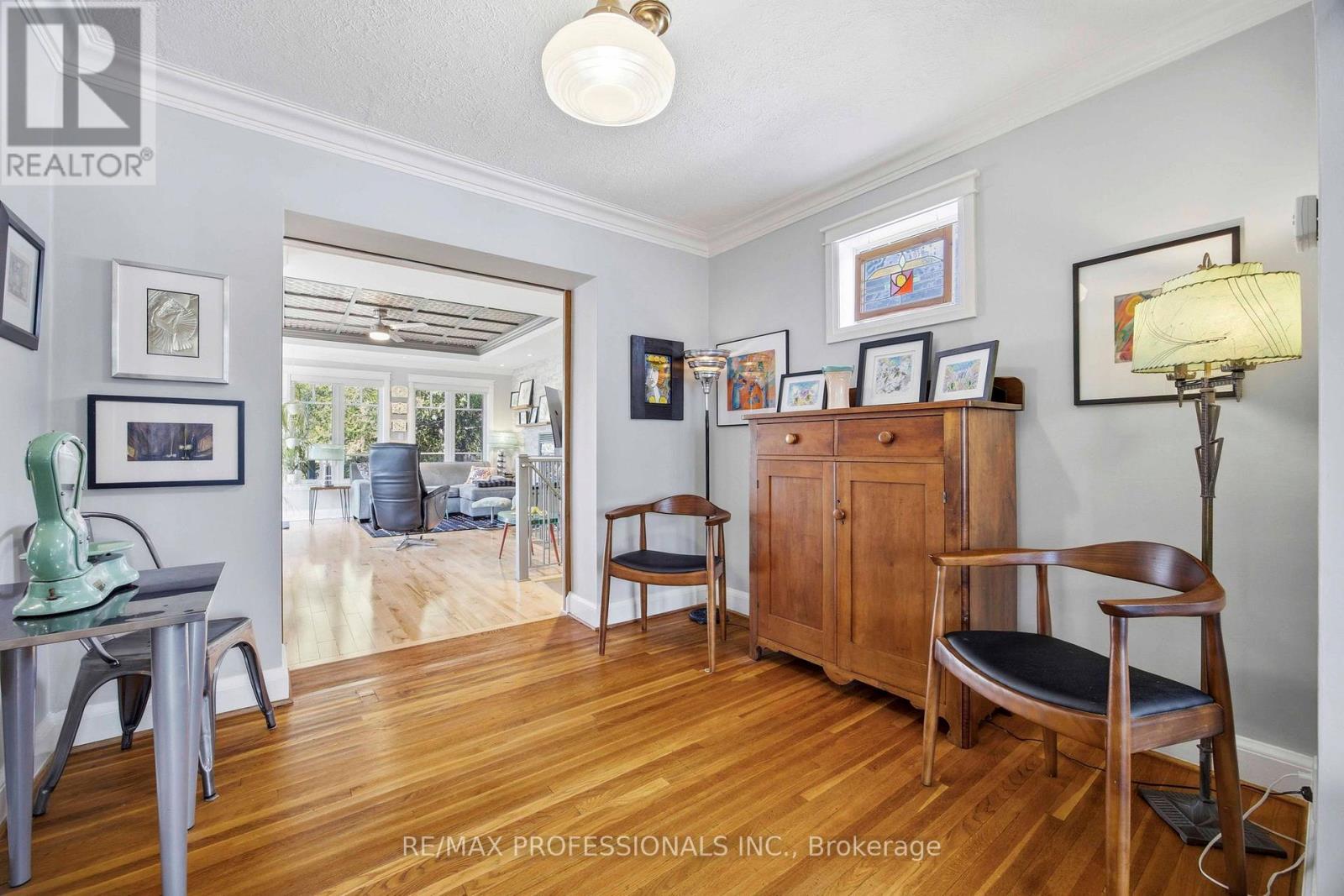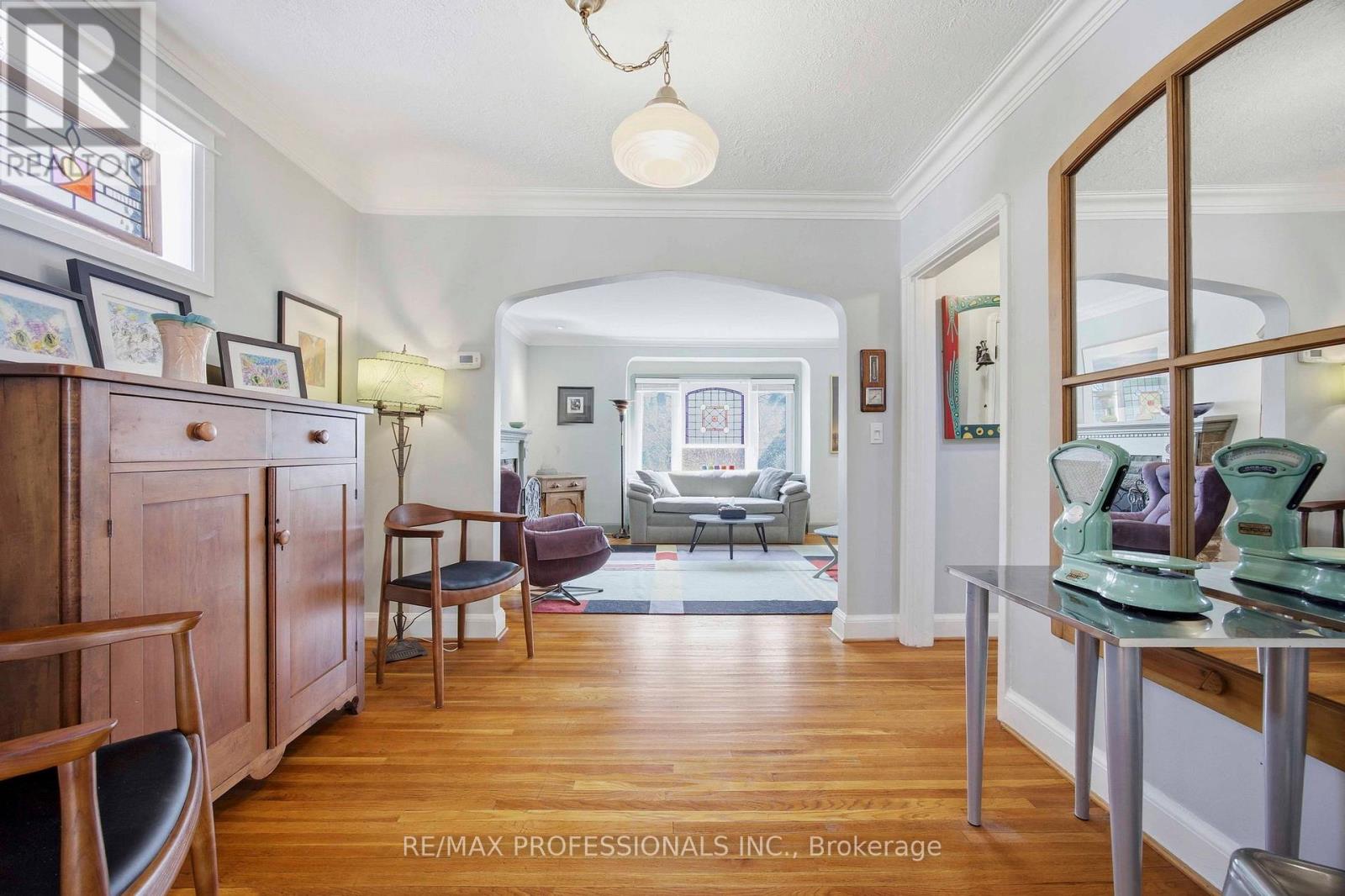 One of a kind and move-in ready! Welcome to 46 Twentieth Street, where tasteful modern renovations meet timeless elegant character. The main level welcomes you with beautiful strip hardwood flooring throughout the formal living and dining areas, leading to an expansive family room designed for relaxation. This impressive living space features a stunning stone-wall gas fireplace and a seamless walk-out to the private backyard deck. Updated 2-piece powder room. The main floor is completed by a large eat-in kitchen with stainless steel appliances. Upstairs, find two bedrooms and a renovated three-piece bath featuring luxurious heated floors. The lower level is uniquely versatile: one side offers a suite with a separate entrance, kitchen, and updated bath-ideal for guests or extended family. A second, separate basement area accessible via the family room has been beautifully finished with polished concrete heated floors and bright above-grade windows, making it the ultimate home office or studio. Enjoy a serene backyard retreat and the rare convenience of a detached garage. Perfectly situated near schools, transit, parks, and major commuting routes. A truly unique opportunity! (id:61483)