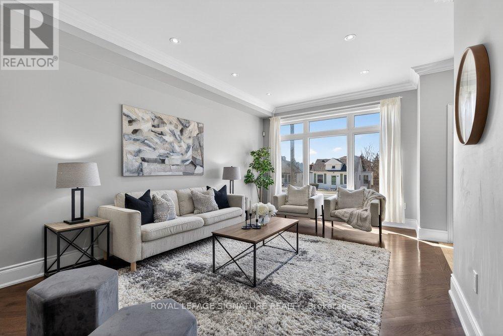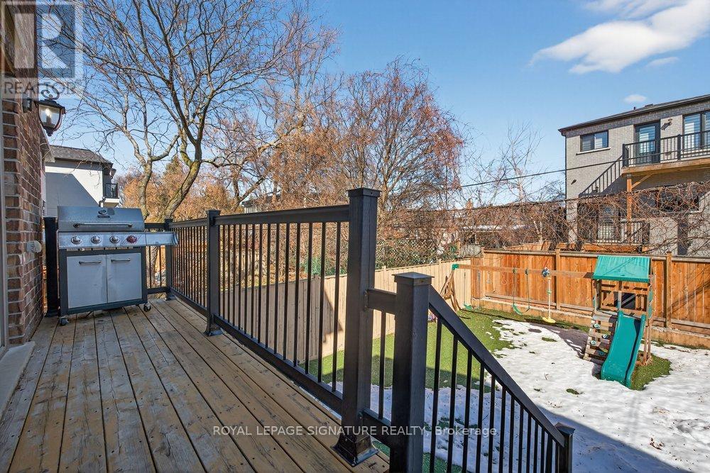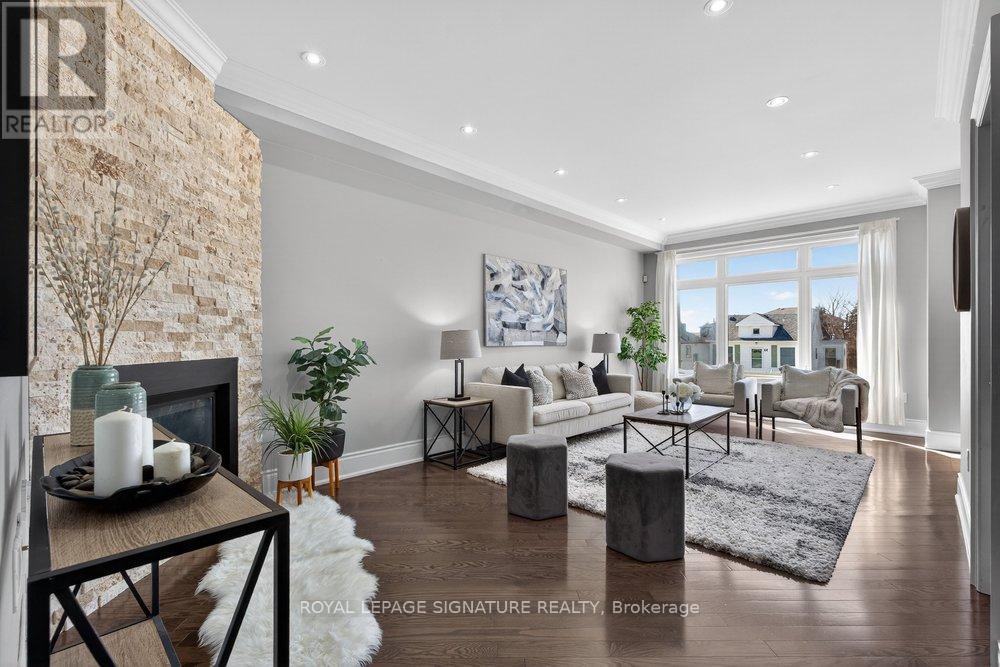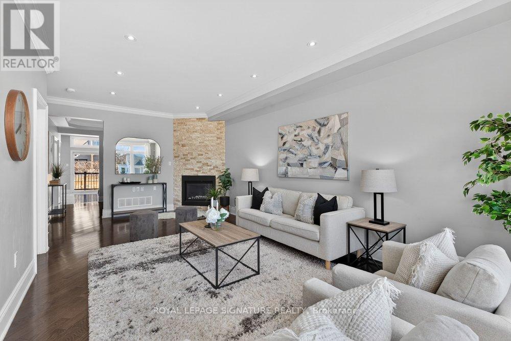 Nestled in the desirable Clairlea community, this elegant Bexhill residence showcases thoughtful design and exceptional craftsmanship throughout. Refined finishes include crown mouldings, LED lighting, rich hardwood flooring, and expansive windows that fill the home with natural light. The living room is both stylish and inviting, centred around a built-in gas fireplace set against a striking stone feature wall. A separate dining room offers an intimate setting for family meals and entertaining. The chef's kitchen blends form and function with granite countertops, a centre island with seating for three, built-in stainless steel appliances, and dramatic floor-to-ceiling sliding doors that open to a spacious deck overlooking the landscaped backyard. The primary suite is a serene retreat featuring a vaulted ceiling, crown moulding, double closets, and a spa-inspired 5-piece ensuite with a double vanity and Jacuzzi tub. Two additional bedrooms share a well-appointed Jack & Jill 5-piece bathroom, ideal for family living. The fully finished lower level offers a bright, open-concept space with large above-grade windows and a walkout to the private, fenced backyard. The Basement includes a full washroom and can be used as a 4th bedroom or better yet, add a small kitchen to the laundry room and have a separate bachelor unit! Designed for ease and enjoyment, the backyard is finished with low-maintenance turf-perfect for outdoor entertaining and everyday living. (id:61483)