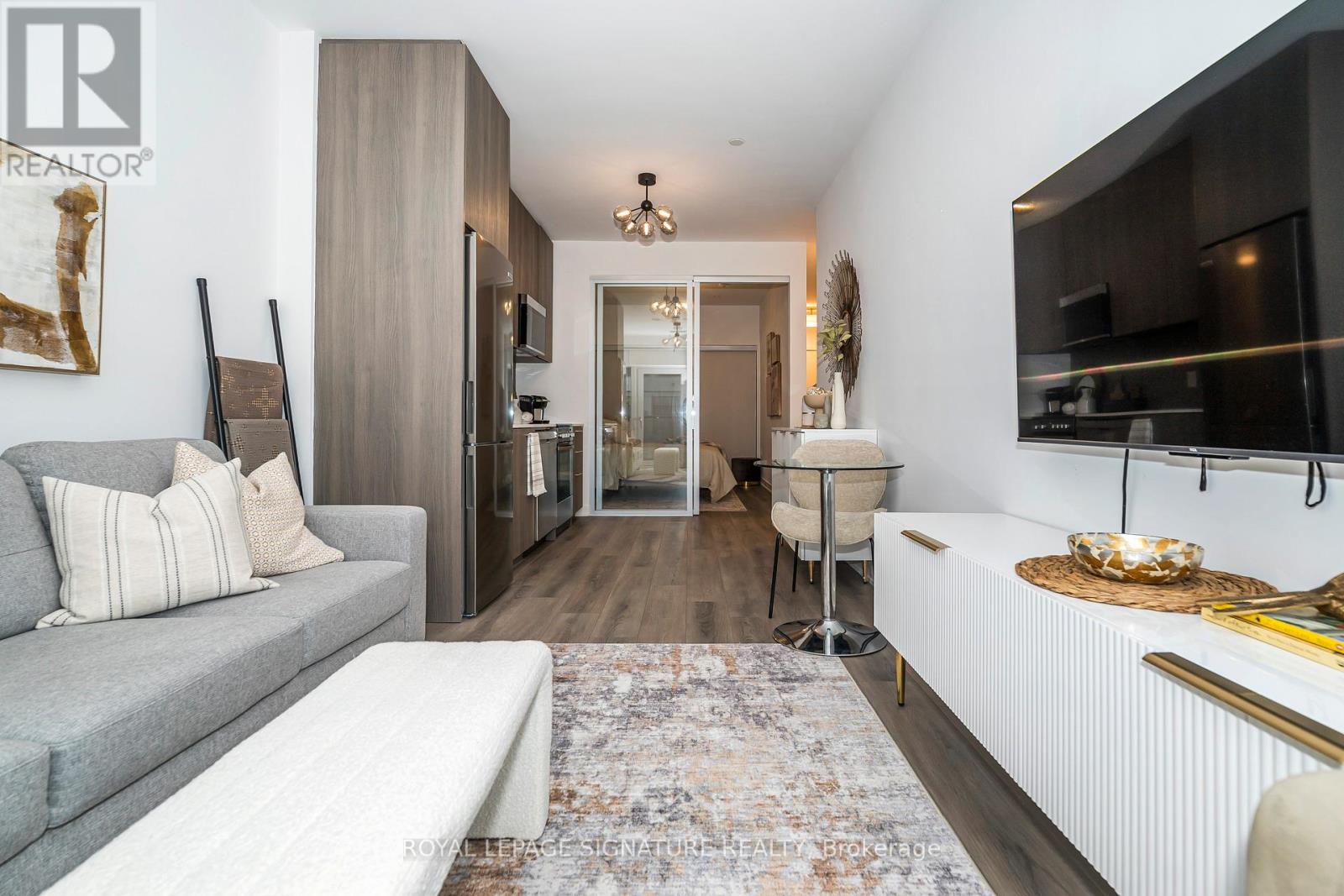 $422.53 MonthlyWelcome to The Narrative Condo! A beautiful, brand-new, never-lived-in 1-bedroom, 1-bathroom suite offering a bright, functional open-concept layout with no wasted space. The sleek modern kitchen features stylish finishes and flows seamlessly into the living area. What truly sets this unit apart is that it is being sold fully furnished, complete with new furniture, upgraded lighting, and elegant moulding in the hallway. Whether you're looking for a turnkey home or an excellent investment opportunity, this suite is move-in ready or ideal to lease as a furnished rental. Parking is also included. Residents enjoy outstanding amenities including a state-of-the-art fitness centre, yoga studio, party room, games room, 24/7 concierge, and ample visitor parking. Ideally located just minutes from the beach, waterfront, parks, trails, and camping, with convenient access to TTC, GO Transit, Highway 401, and the University of Toronto. (id:61483)