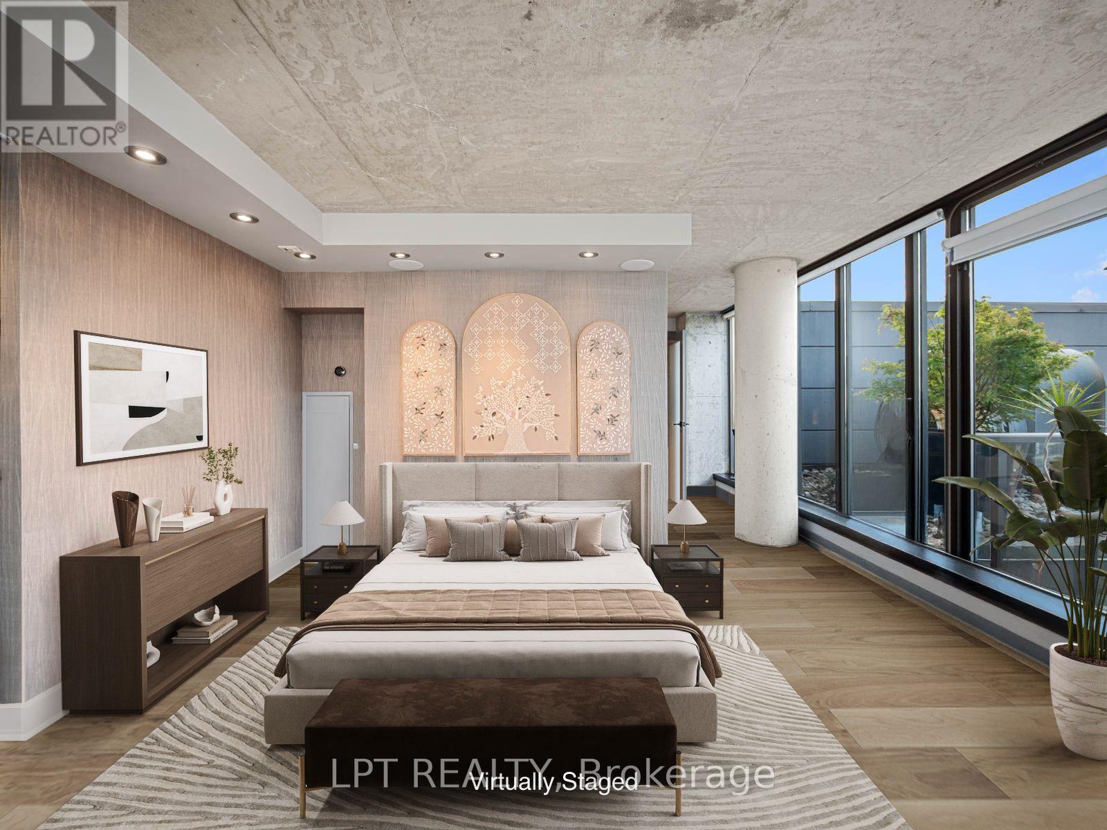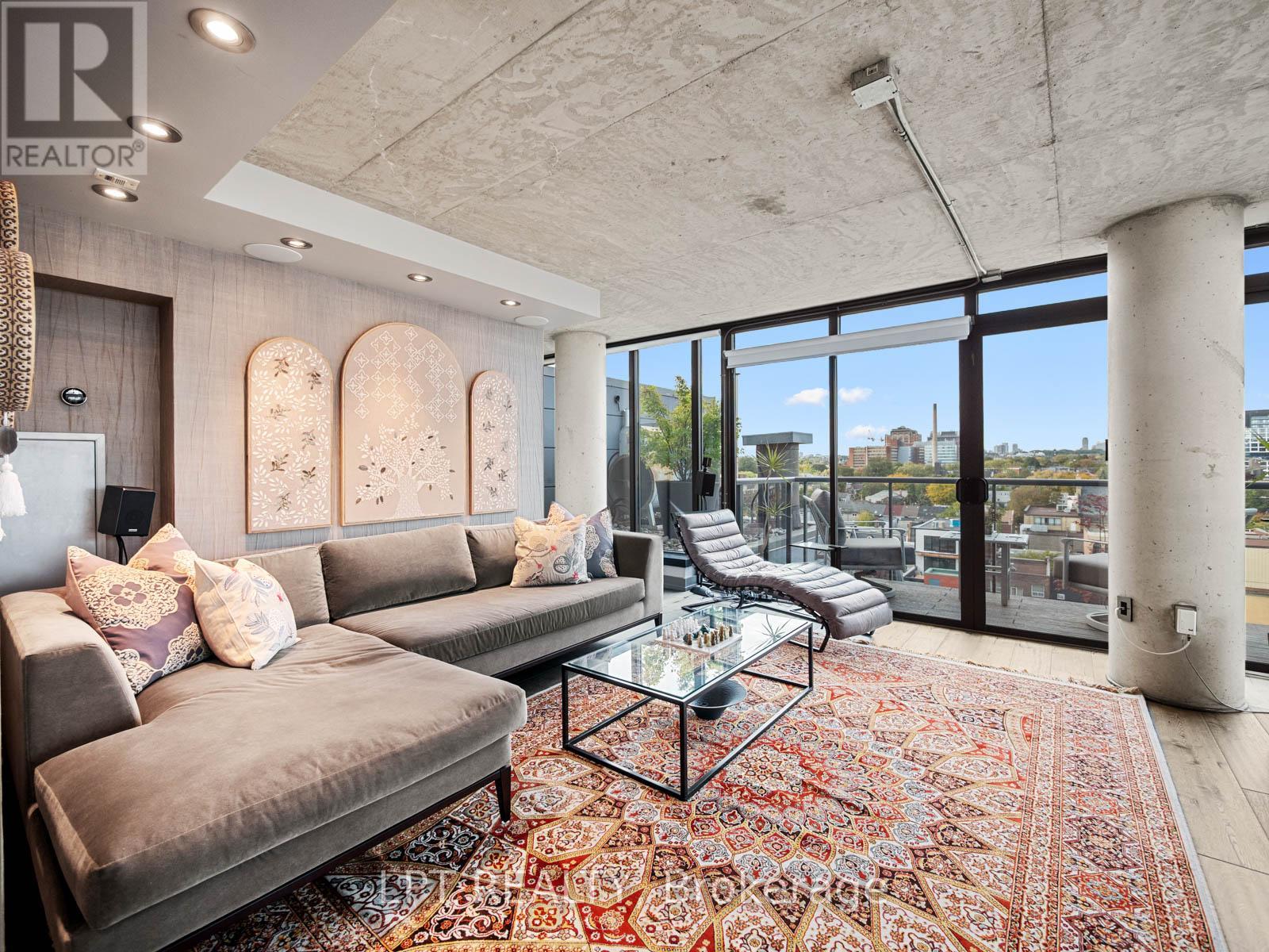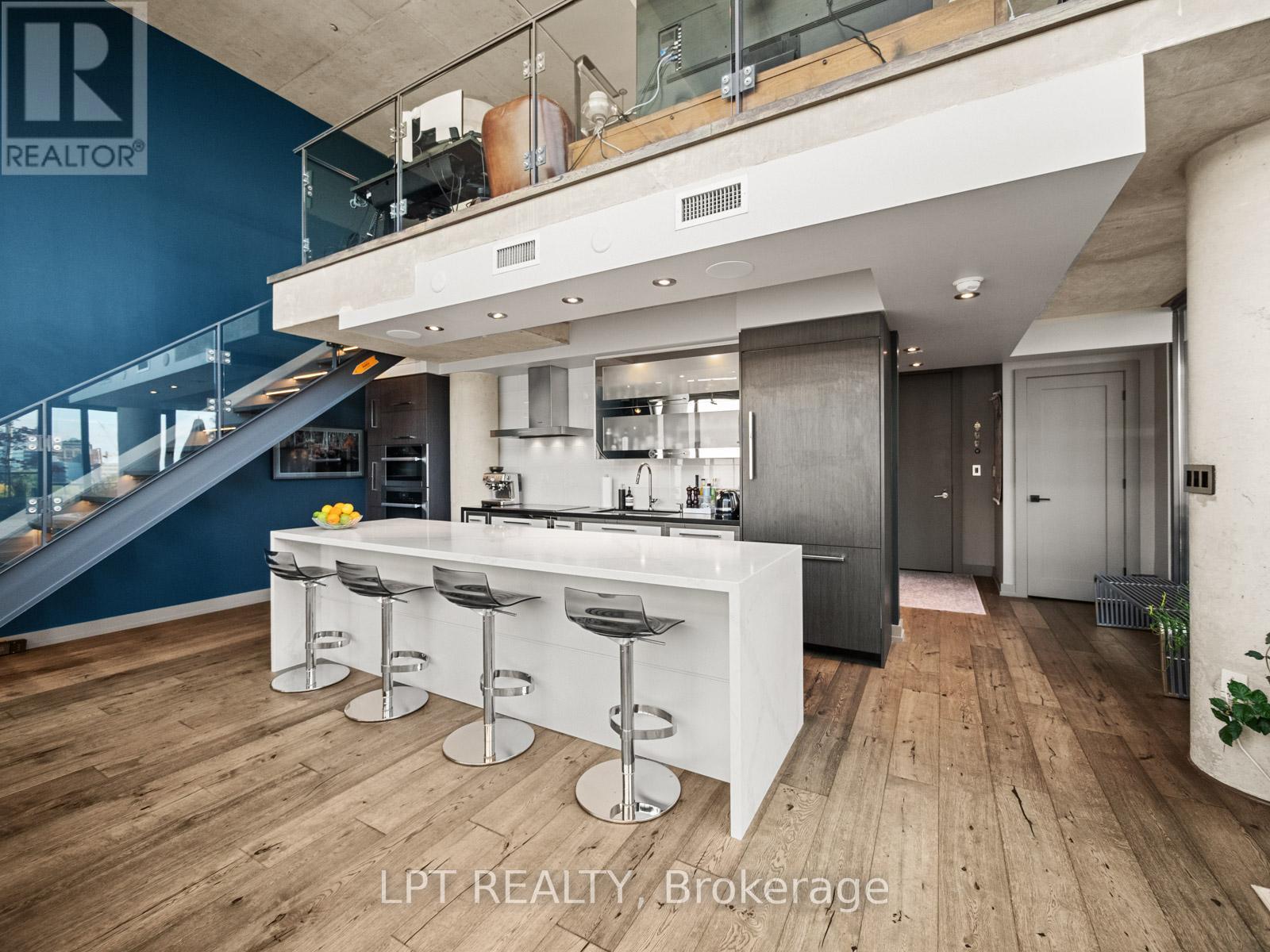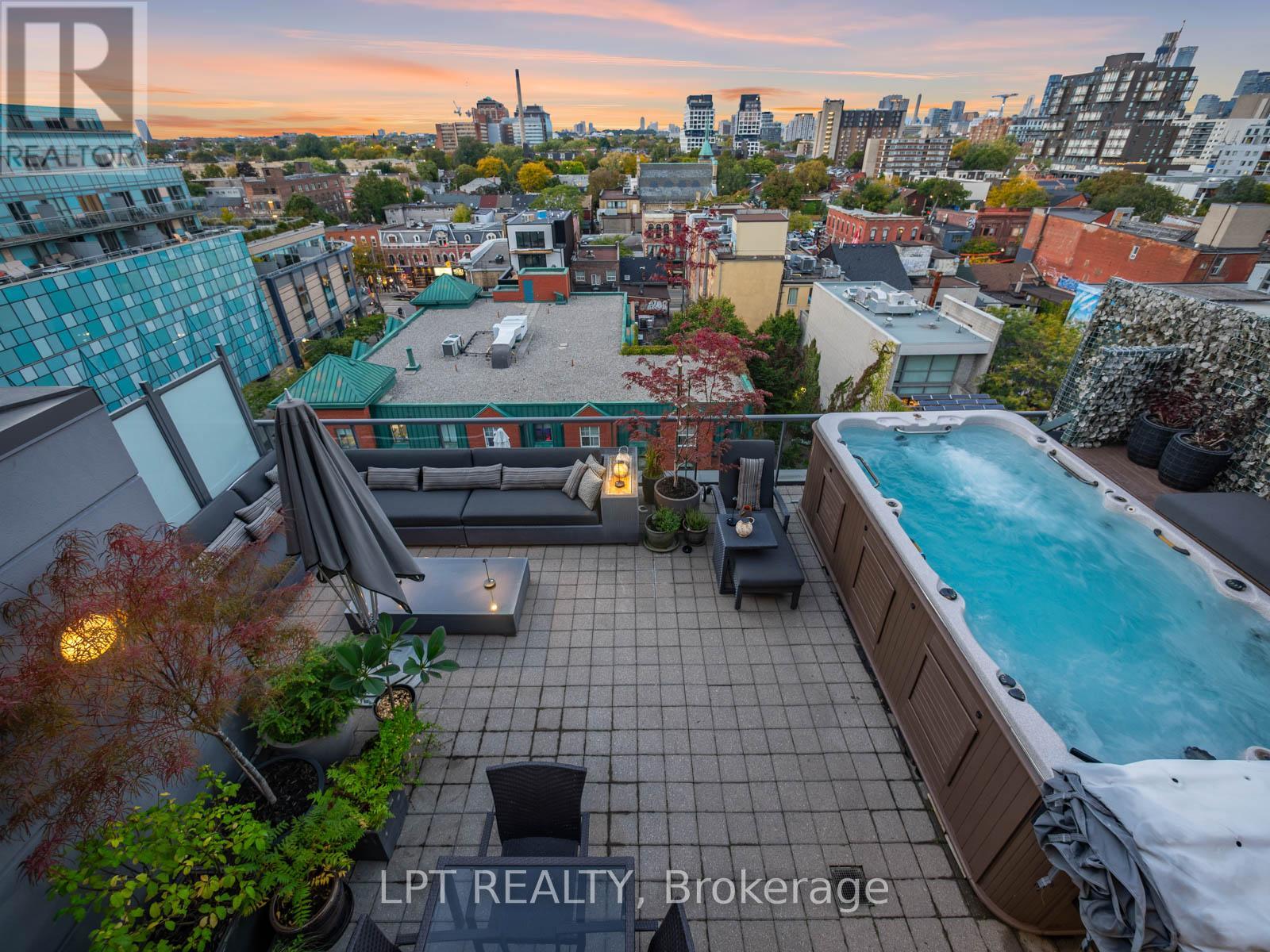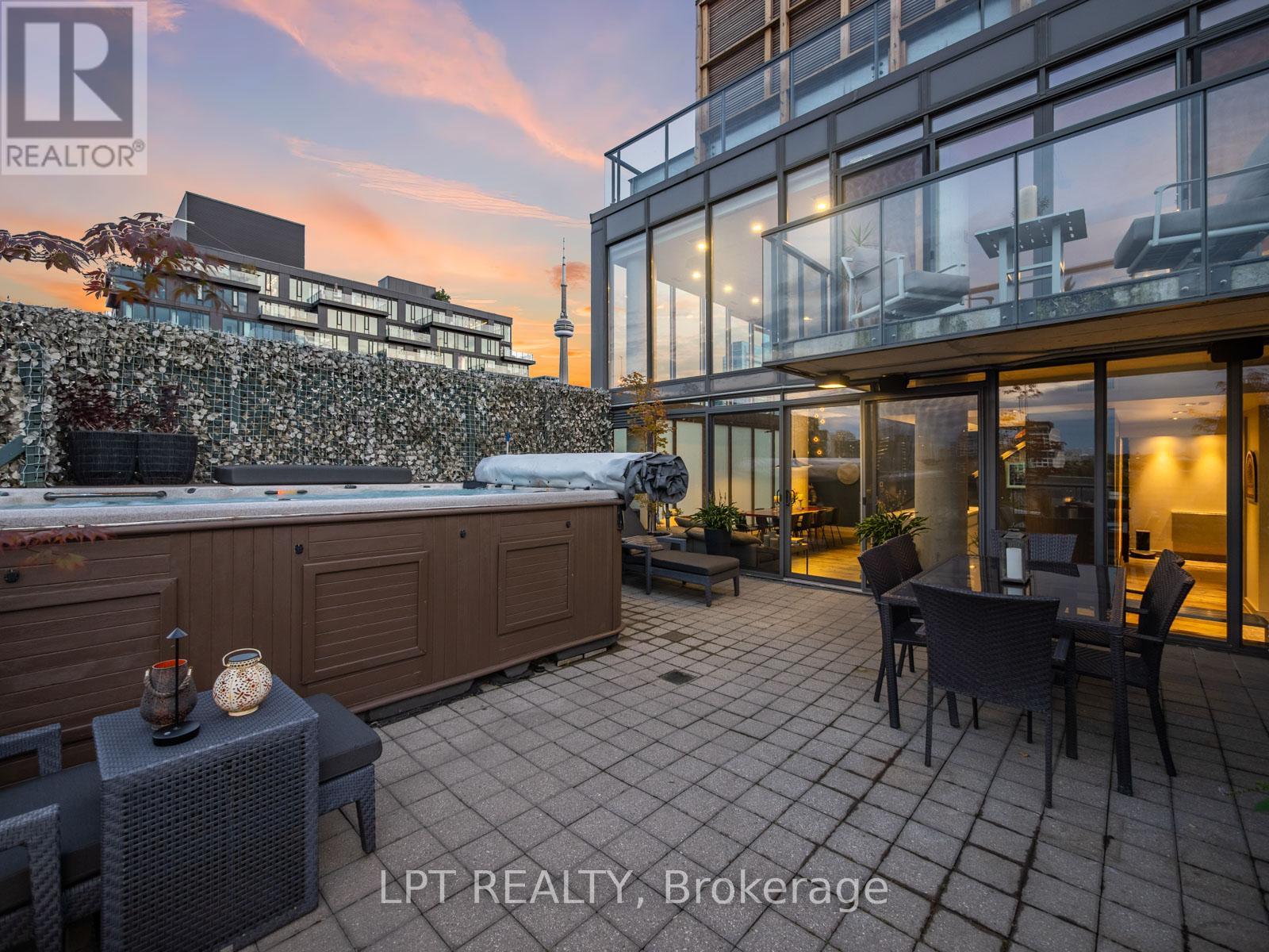 Where King West Energy Meets Penthouse Luxury.Amazing two-storey, 2+1 bedroom, 2 1/2 bath loft is one of only two on the floor - completely reimagined with over $500,000 in custom redesign and detailing.Spanning 1,600 + sq ft, the open-concept living area sits beneath dramatic 18 ft double-height glass, blurring the line between indoors and out. Every detail is intentional - exposed concrete columns, custom wood floors, and a 10.5-ft island, anchor a Miele-equipped kitchen designed for enjoyable cooking and entertaining. Integrated Bowers & Wilkins sound flows through the space, while a 9-ft dining table and sculptural lighting set the stage for memorable evenings.The flexible layout can be enjoyed in its current configuration or easily converted back to the original two-bedroom design on the upper level. Either way, this space blends calm and character with rich textures, built in wet bar, private jacuzzi bath, and a spacious balcony that accentuates unobstructed city views - your own quiet retreat above the skyline. The main-floor den includes a built-in desk and Murphy bed, ideal for guests or a private home office. The 806 sq ft lower terrace is the true showstopper: a private outdoor oasis with a premium Swim Spa, Weber Summit BBQ, and custom Sunbrella lounge and dining zones. Gas and water lines make it perfect for year-round use.Every finish has been curated - from automated blinds and integrated lighting to two parking spaces and a triple-size locker. Set in Toronto's King West, you're steps from top restaurants, shopping, gyms, and nightlife.If you love to entertain and live in style, PH1 at 533 Richmond is where it all comes together. (id:61483)