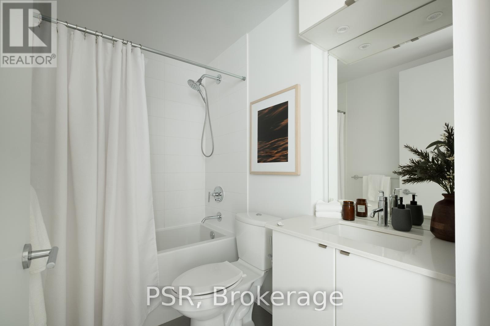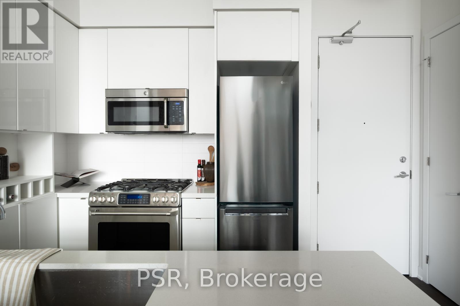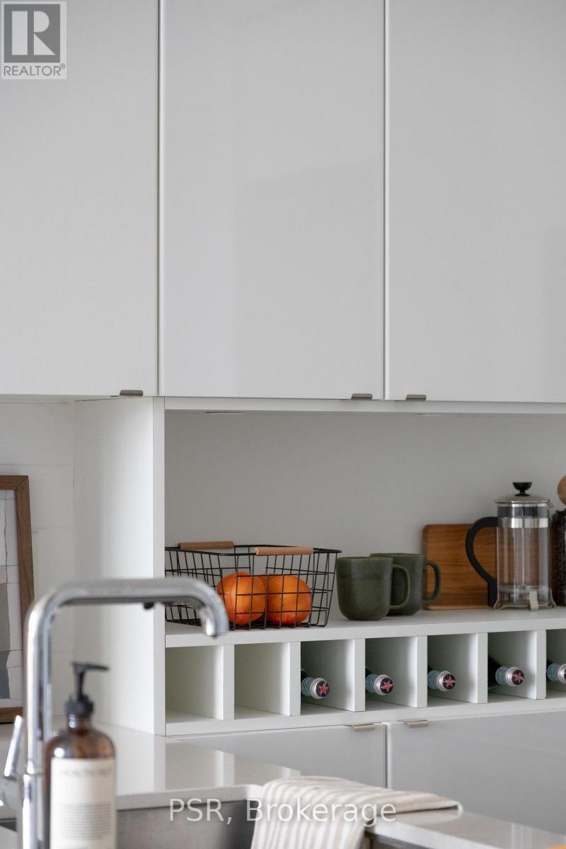 Welcome to penthouse living at Showcase Lofts in the heart of vibrant Leslieville. This beautifully updated 1-bedroom, 1-bathroom suite offers a perfect blend of loft-style character and modern comfort, featuring eco-engineered, hardwood flooring throughout and a striking exposed brick feature wall that adds warmth and personality. The chef's kitchen is designed to impress, featuring a gas stove, oversized stainless steel undermount sink, and a large breakfast bar-perfect for cooking and entertaining. Ample kitchen cabinet space and storage throughout ensures that everything has it's place, while the spacious bedroom boasts floor-to-ceiling windows that fill the space with natural light. Located on the penthouse level, this unique suite also features a rare skylight and unobstructed west-facing views of the city skyline, creating a bright and airy living environment throughout the day. The open living room offers the perfect place to relax at the end of the day, entertain friends for dinner with room for a dining table, or have room to work from home. This condo includes a parking space, locker, and bike storage unit-an exceptional bonus for city living. Residents of Showcase Lofts enjoy fantastic amenities, including a large fitness centre, party room, BBQ area with outdoor space, guest suite, concierge service, and guest parking. Perfectly situated in the centre of Leslieville, you're just steps from incredible restaurants, local cafés, boutique shops, and the TTC, with easy access to the DVP for a quick commute. Experience the best of loft living in one of Toronto's most sought-after neighbourhoods. (id:61483)